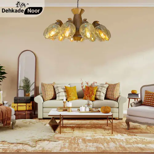 - نورپردازی یکنواخت: با توجه به قطر 90 سانتیمتری، این لوستر نور را به طور یکنواخت در فضای مورد نظر پخش میکند و به زیبایی محیط میافزاید. این ویژگی میتواند فضای خانه را روشن و دلنشین کند.