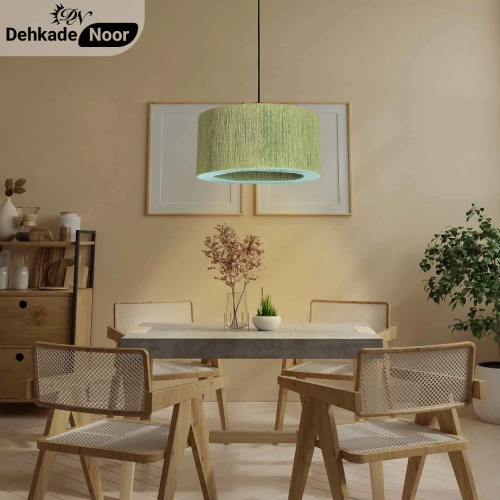 چراغ آویز بافت استوانه دوبل سبز با طراحی دو‌لایه و رنگ سبز تازه، جلوه‌ای طبیعی و چشم‌نواز به دکوراسیون‌های بوهو، مینیمال و مدرن می‌بخشد. ترکیب بافت رافیا با رنگ سبز، حس طراوت و آرامش طبیعت را به فضای داخلی منتقل می‌کند. طراحی دوبل این آویز باعث پخش یکنواخت نور و افزایش جذابیت بصری محیط می‌شود و آن را به یک المان دکوراتیو شاخص تبدیل می‌کند.