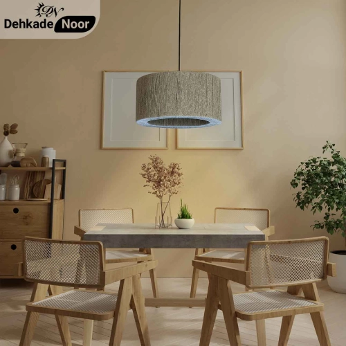 چراغ آویز بافت استوانه دوبل طوسی ترکیبی چشمنواز از سادگی مدرن و سبک بوهو است که جلوهای آرام و شیک به فضای داخلی میبخشد. طراحی دولایه استوانهای در کنار بافت طبیعی رافیا، باعث پخش ملایم نور شده و جلوهای دکوراتیوتر نسبت به مدلهای ساده ایجاد میکند. رنگ طوسی خنثی این آویز، بهراحتی با انواع سبکهای دکوراسیون هماهنگ میشود.