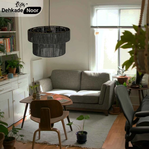 کاربردهای چراغ آویز بافت استوانه 2 طبقه رنگ مشکی
